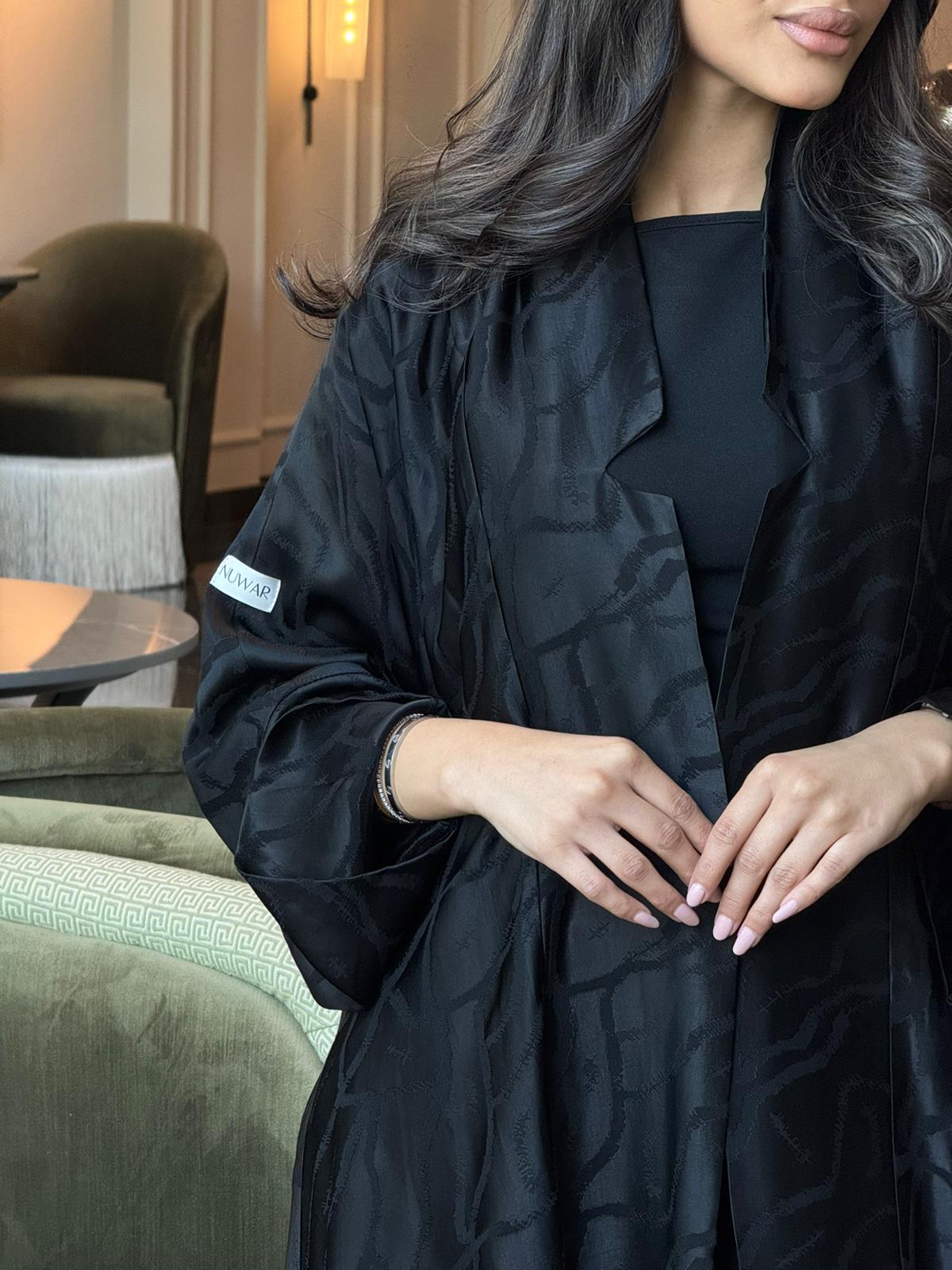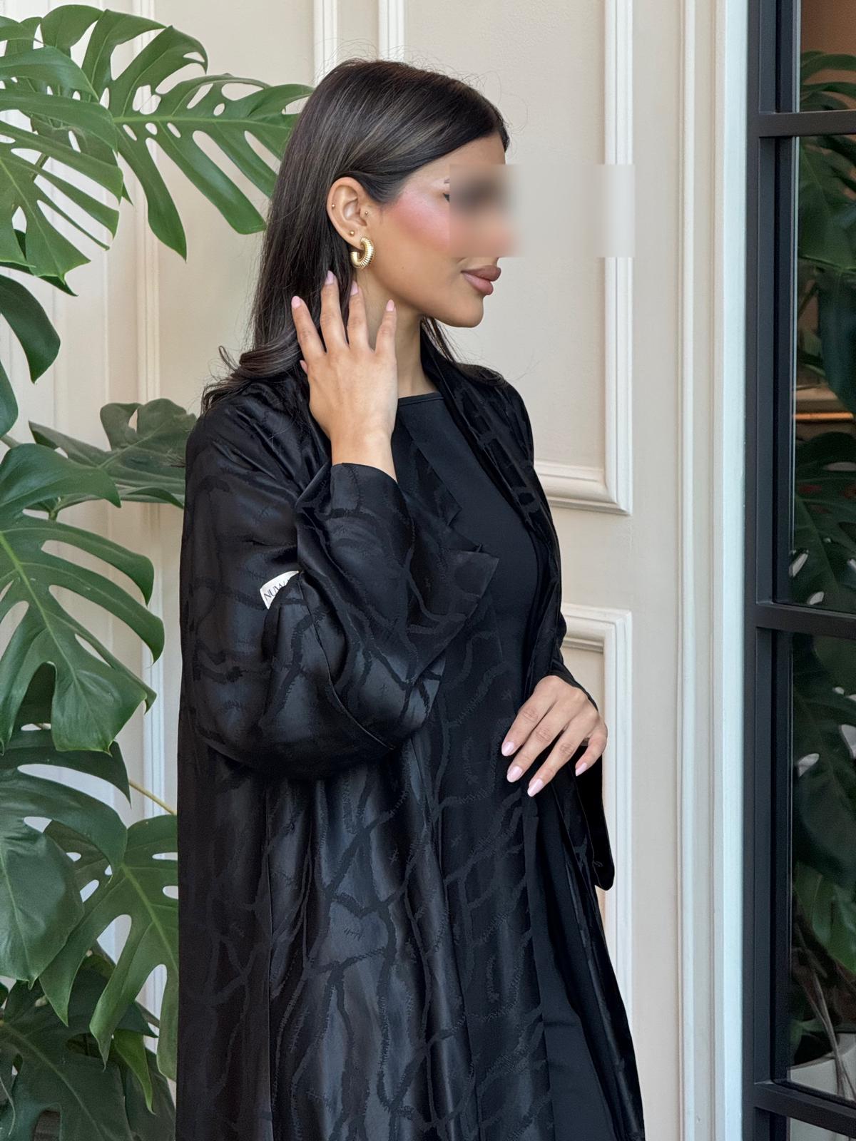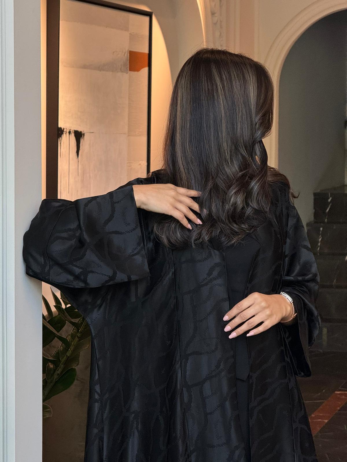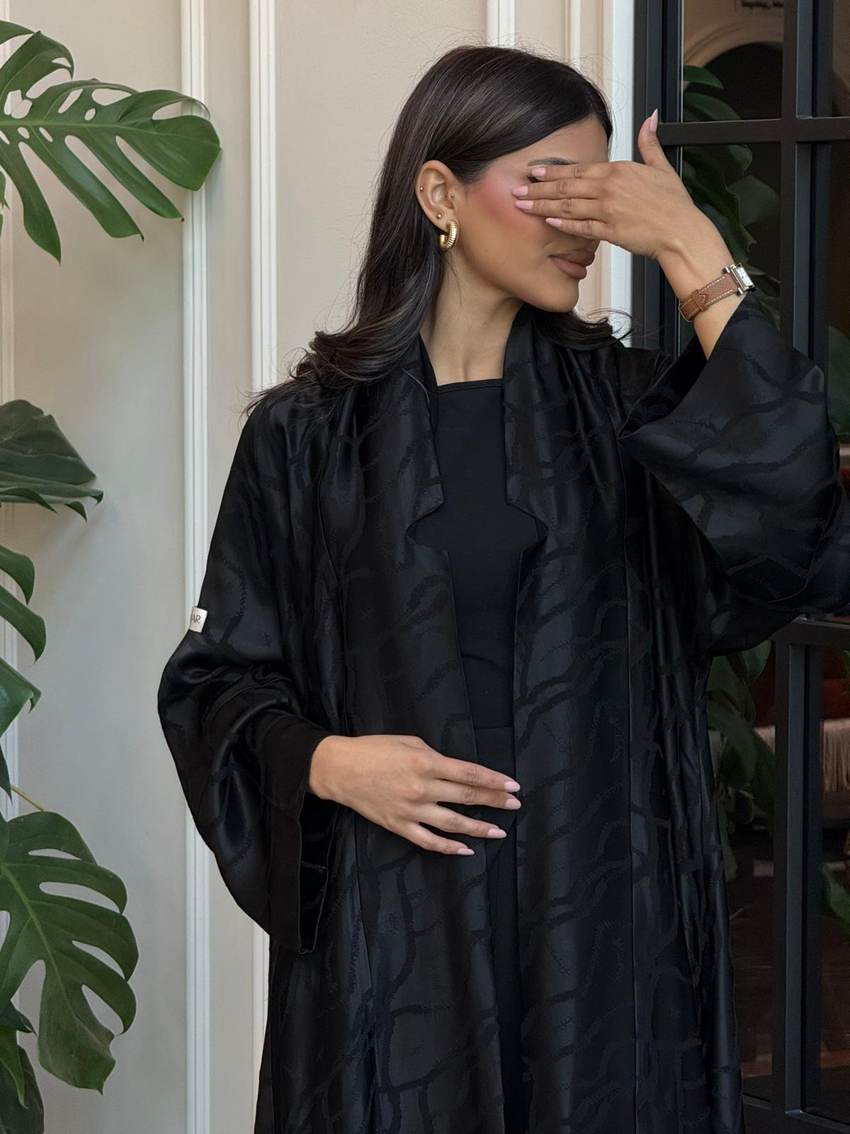 الوصف:عباية سوداء بقماش الجاكار الناعم الاسود صُممت لتتناسب مع الاستخدام اليومي لخفة القماش، مناسبة للدوامات و للمناسبات الاخرى.