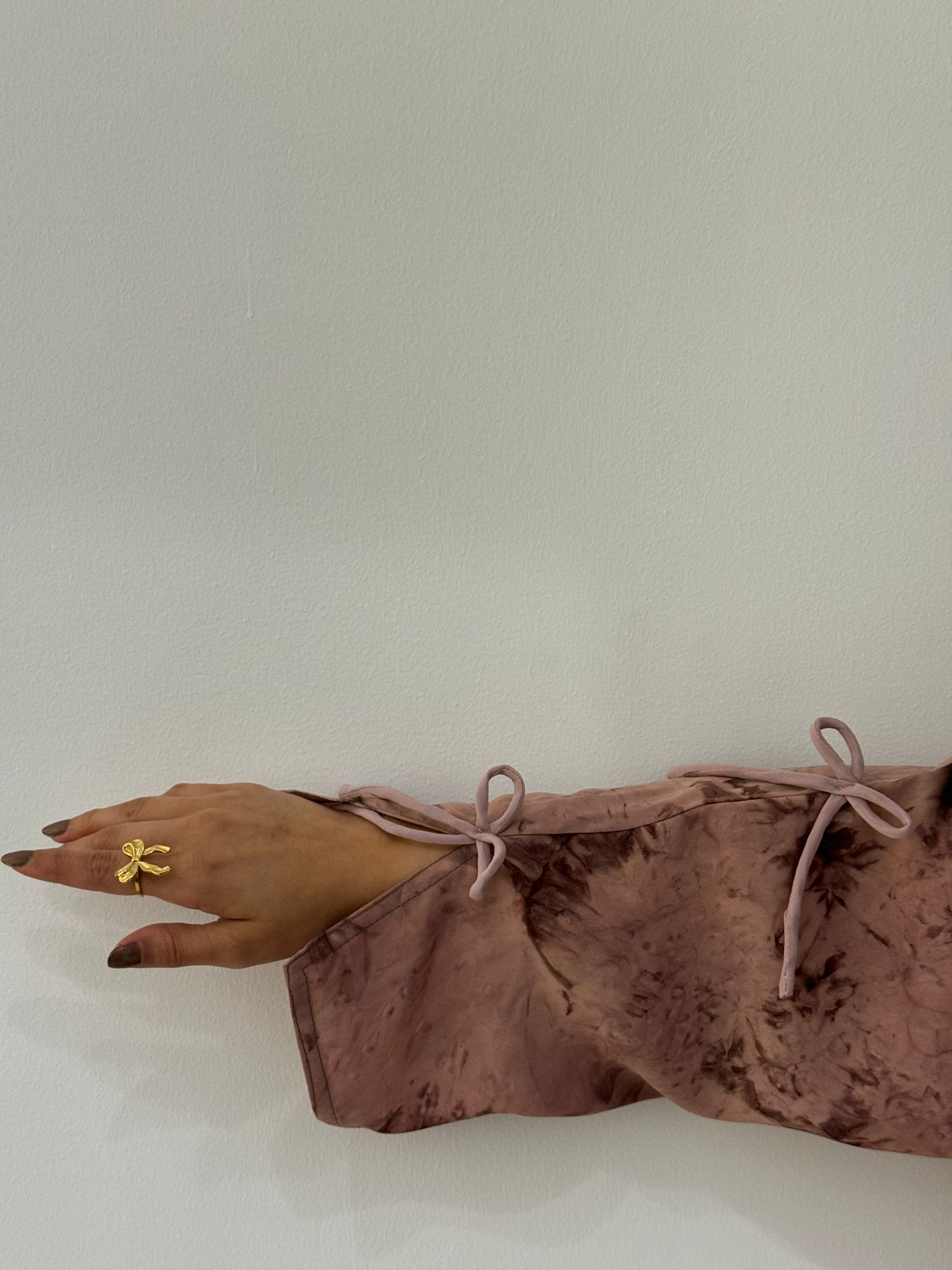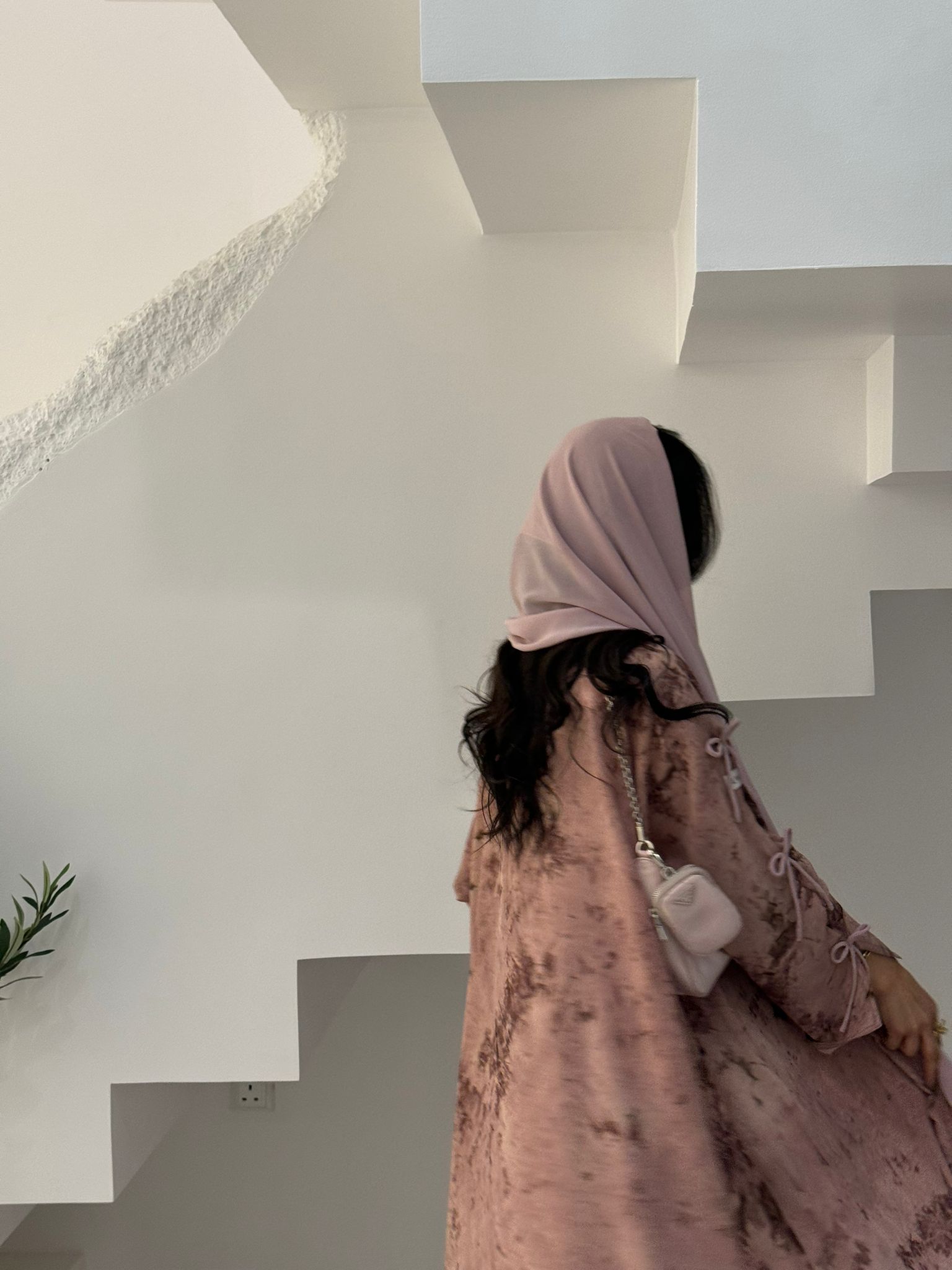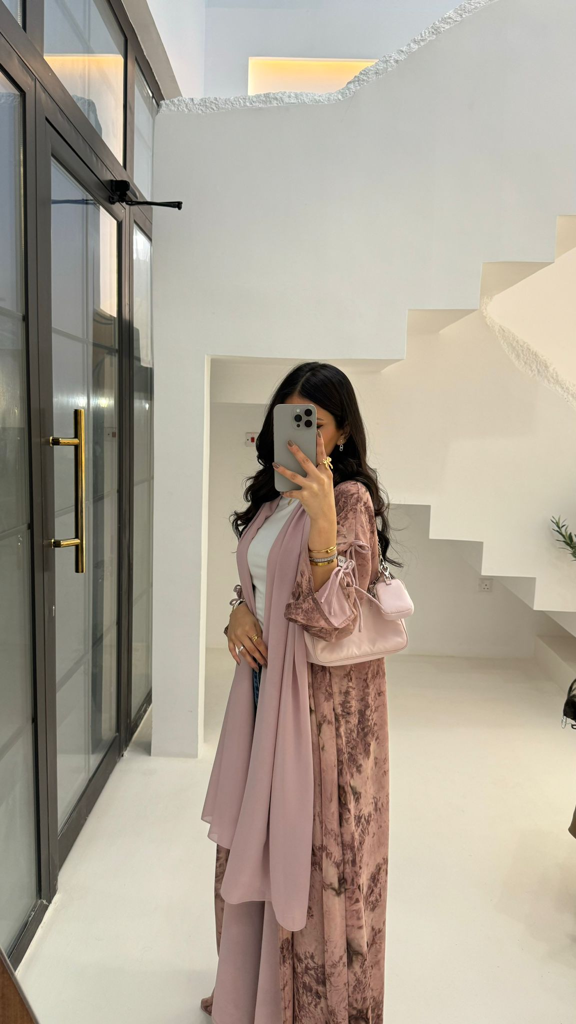 عباية بدرجات الوردي الفاتح مع فيونكات فالاكمام.