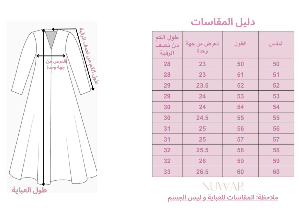 الرجاء العودة لصفحة طريقة الغسيل و جدول المقاسات كما هو موضح في الموقع.